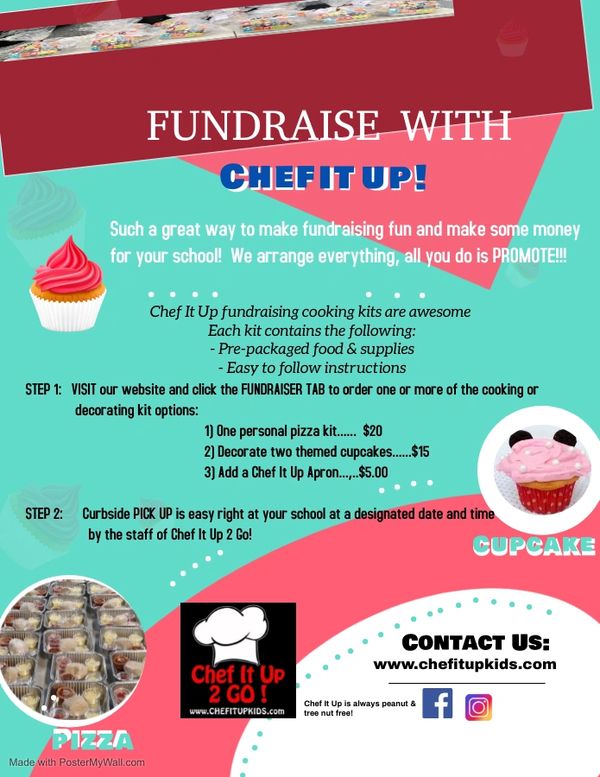 Chef It Up kits! Our fundraiser kits can be customized for a specific theme or season and we have many options to choose! Chef It Up does it all from start to finish and all the school/organization needs to do is promote!